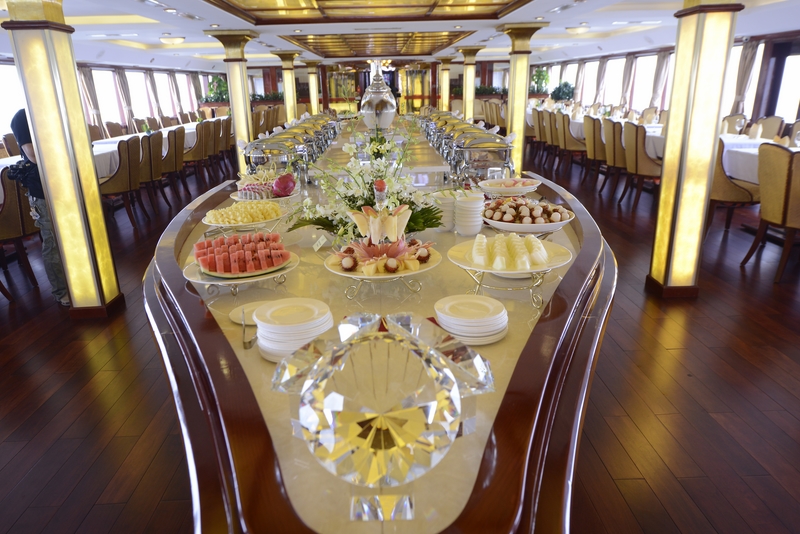 Traditional architecture yet the modern of The Golden Cruise bring you the cultural experience of the local Vietnamese during your trip. Upon arrival, the guest will be escort and guide to the ship by the cruise manager and team of crew on a traditional costume of Vietnam. The dining venue on board brings you the taste of local Vietnamese luxury’s cuisine.