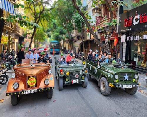 - Embark on an exciting Jeep ride through the lively streets of Hanoi, immersing yourself in the city's vibrant motorbike culture.
