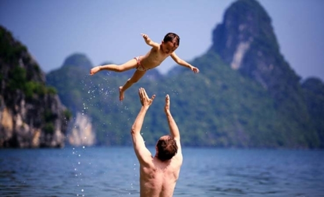In the morning our tour bus and guide will come to your hotel and transfer you to Ha Long Bay. After an approximate 3,5 hours drive we will arrive at HaLong Bay wharf, you will be met by our crew who escort you on board and serve welcome drinks. You then check into your cabin and we begin cruising into Halong Bay. Have lunch in the restaurant while you enjoy the stunning views of the Bay. In the early afternoon we arrive at floating fishing village and drop anchor. Our guide will give you some information and interesting facts about this fascinating village and its local community. We disembark and travel on the sampans rowed by the local people. They will be your guides through their fishing village where you can meet the locals, visit the school and pearl farms. If you want private moment you can also go kayak by yourself to discover the surrounding area (Kayaking fee is included). See first-hand what life is like living on the water. Back on board we head for the island and beaches for swimming and relaxing on deck to pamper yourself. On the island you can go swimming, relax on the beach, play sport or hiking to the top of the mountain for overview image of the bay. At night, you you can join in our activities like squid fishing, karaoke, movies or simply relax on quieted top deck for fresh atmosphere of the bay.