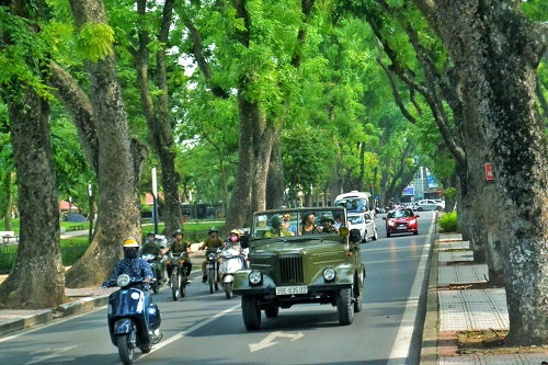 - Drive route and take photos: Flag Tower, Ho Chi Minh Mausoleum, Ba Dinh Square, Opera House, Long Bien Bridge, Westlake, Phan Dinh Phung photos checkin, and Thang Long Royal Citadel, Yellow Cathedral.