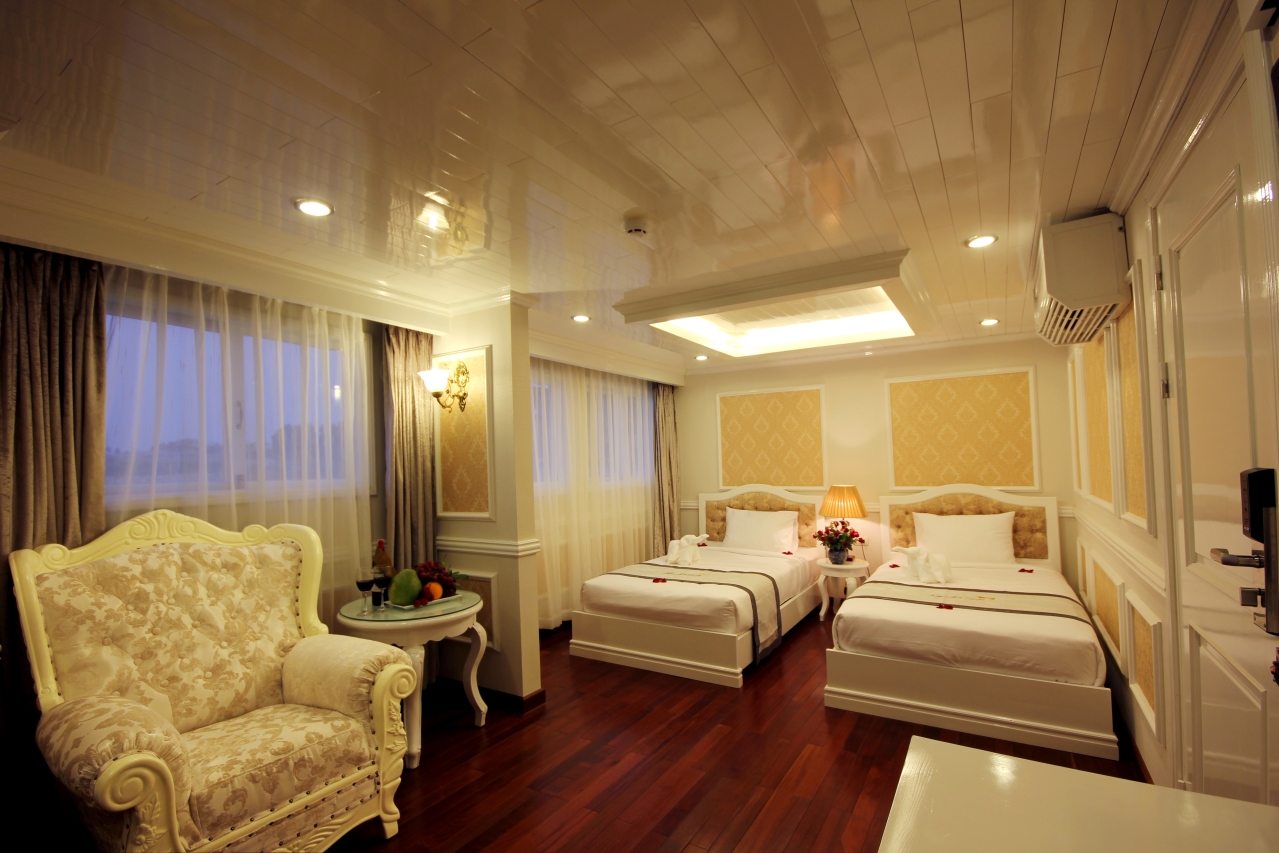 20:45 – 12:00: Your free time to relax with an exotic cocktail or whatever takes your fancy. Our bar has a wide range or wines, beers and liquors and is always a welcome sight for guests after a day on Halong Bay. Order a specialized massage in room. Choosing with other activities boat cruise such as watch documentary movies, squid fishing or simply relax on our roof top deck under the cover of a star filled sky.